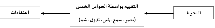 نستنتج من هذا، أن كل تجربة نعيشها، نقوم بتقييمها و بتقديرها عن وعي و/أو عن غير وعي باستعمال كافة حواسِّنا الخمس التي من خلالها يكون تحصيل، اكتساب و إحراز المعلومة. و انطلاقا من كمِّ و طبيعة المعلومات المُحصَّلة، و انطلاقا من كل تجربة تُخْلَقُ و تُنتَجُ اعتقادات معينة مرتبطة بالتجربة المعاشة.