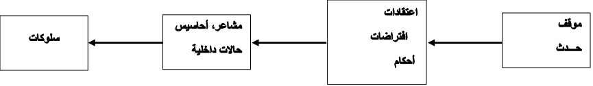 أي تجربة، واقع، حدث، موقف أو حقيقة يعيشها الفرد، ستخلق بصفة أوتوماتيكية و بتلقائية فائقة السرعة اعتقادا، افتراضا أو حكما مرتبطا بهذه التجربة و الذي سيخلُق بدوره، ينفس التلقائية و السرعة، شعوراً، إحساسا، عاطفة أو انفعالاً سيذهب، بدوره، في نفس الخط بخلق سلوكٍ يعتبر نتيجة لتفاعل كل العناصر السابقة.